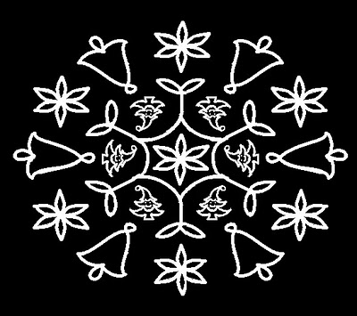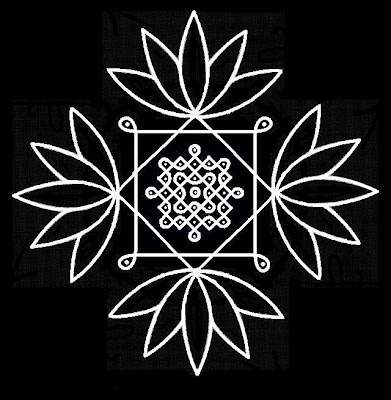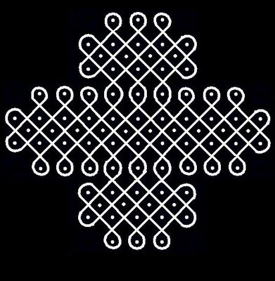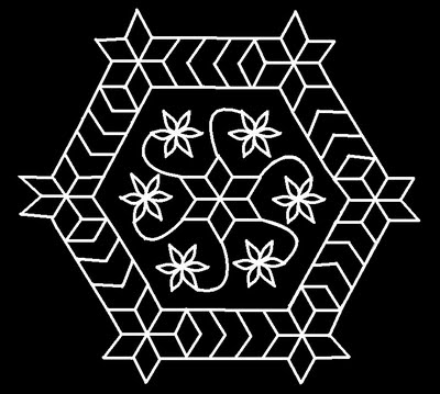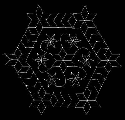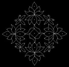Rangoli is a very popular form art in India. It is usually drawn by Indian women in front of their doors or gates. Although the basic color of Rangoli is white (known as "chirodi'), it is dyed different colors creating an attractive, multi-colored design.