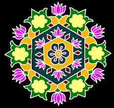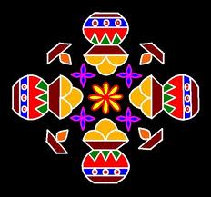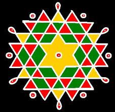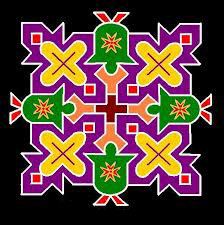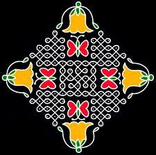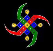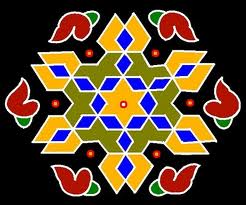 Rangoli is a very popular form art in India. It is usually drawn by Indian women in front of their doors or gates. Although the basic color of Rangoli is white (known as "chirodi'), it is dyed different colors creating an attractive, multi-colored design.