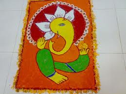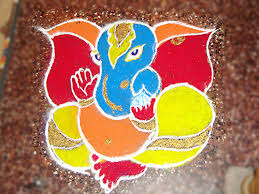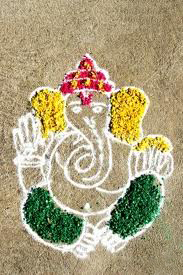 Rangoli is a very popular form art in India. It is usually drawn by Indian women in front of their doors or gates. Although the basic color of Rangoli is white (known as "chirodi'), it is dyed different colors creating an attractive, multi-colored design.